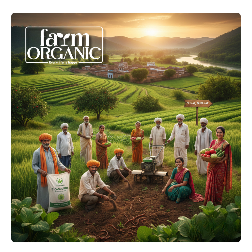 ફાર્મ ઓર્ગેનિક એ સુરત, ગુજરાતમાં આવેલી ISO 9001:2015 પ્રમાણિત કંપની છે. અમે ભારતમાં ટકાઉ ખેતી (Sustainable Agriculture) ના વિકાસ માટે સંપૂર્ણપણે સમર્પિત છીએ. અમે ઉચ્ચ ગુણવત્તાયુક્ત ઓર્ગેનિક પ્રવાહી (Bio-slurries) અને દાણાદાર ખાતરોનું ઉત્પાદન કરીએ છીએ. અમારો મુખ્ય ઉદ્દેશ્ય બંજર થતી જમીનને પુનર્જીવિત કરી ખેડૂતોને આર્થિક અને સામાજિક રીતે સશક્ત બનાવવાનો છે.