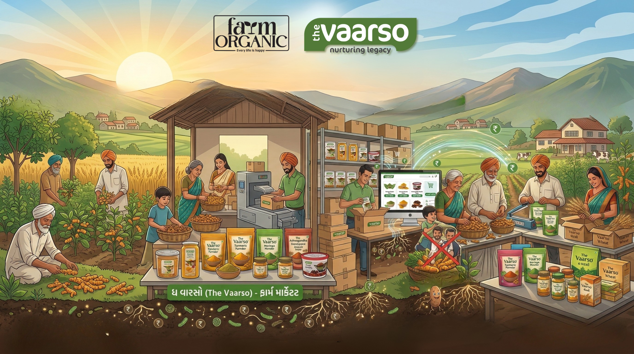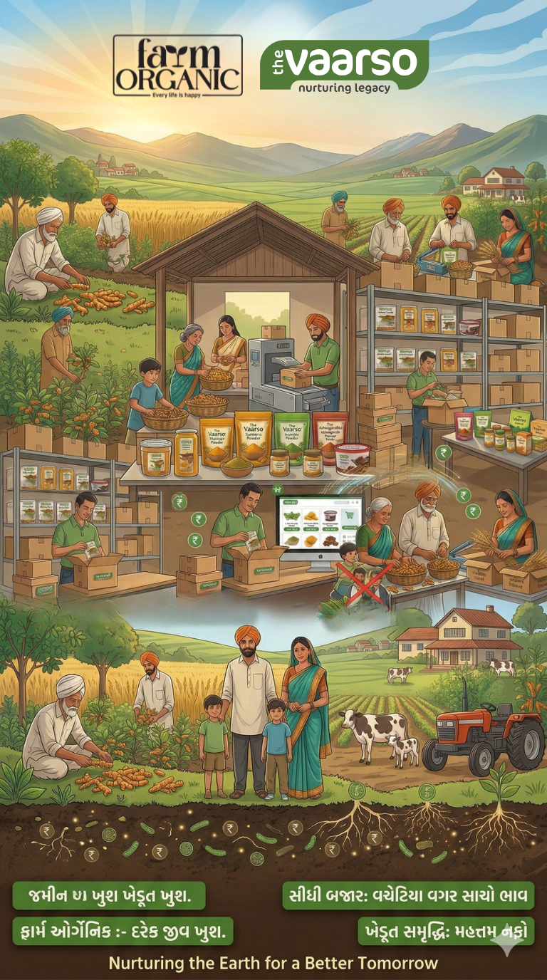 ખેતરમાં તૈયાર થયેલા આ ઉચ્ચ ગુણવત્તાવાળા પાકને 'The Vaarso' (ધ વારસો) બ્રાન્ડના પેકિંગ હેઠળ વ્યવસ્થિત રીતે પેક કરવામાં આવે છે.